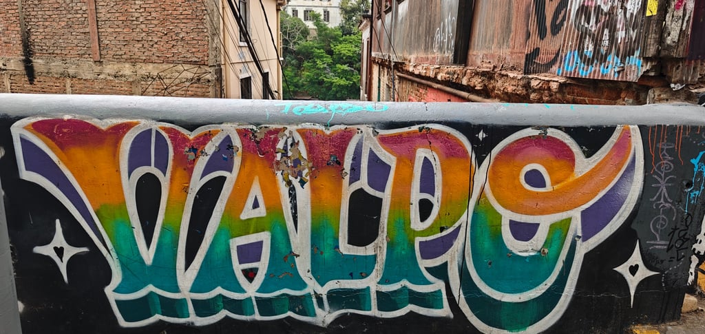 Die Hafenstadt am Pazifik schmiegt sich zwischen unzählige Hügel und ist bekannt für ihre steilen Hänge, krummen Treppen und farbenfrohen Straßen. Für unseren Abschied haben wir uns etwas gegönnt: ein schönes Hotel mit Blick über Stadt und Hafen. Als wir Valparaíso erreichen und unsere Rucksäcke ablegen, kommt die Sonne raus. Endlich „richtige“ Frühlingstemperaturen, nach Wochen voller Wind, Regen und Patagonien-Wetter.