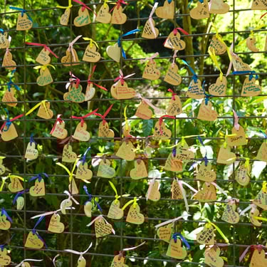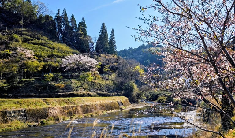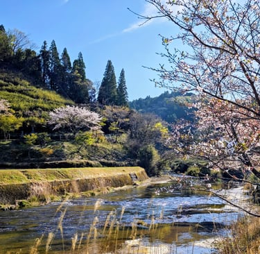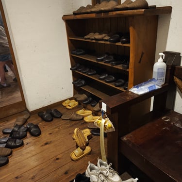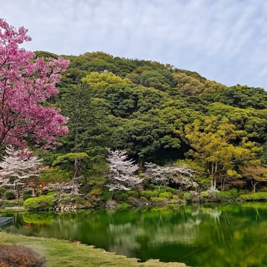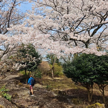 In öffentlichen Onsen muss man kurz nach dem Eingang die Straßenschuhe ausziehen und die Schuhe in einen Schrank stellen. Auf Socken geht's weiter und für die Toilette gibt es die Toilettenschuhe. Ansonsten läuft man im Onsen barfuß. In der Umkleide wird die Kleidung entweder in einen Korb oder, wer mag, in ein Schließfach gelegt. Mit Duschgel, Shampoo, etc. und einem kleinen Handtuch ausgerüstet geht es dann zunächst in die Waschecke. Dort stehen ein Hocker, ein kleiner Holz-Eimer und Spiegel. Es wird sich nun geputzt und shamponiert bis der ganze Körper eingeschäumt ist. Gut abspülen und dann geht's ins Wasser. Im Onsen in Aso gibt es sogar ein Außenbecken. Herrlich im heißen, blubbernden Wasser zu sitzen mit Blick auf einen kleinen Bambuswald, Kirschblüte und Frühlingsblüher. Es ist so ein toller Moment, hier zu sitzen und ringsherum umgibt einen Natur und Frauen, die leise auf japanisch plaudern.