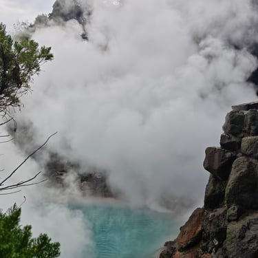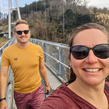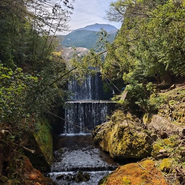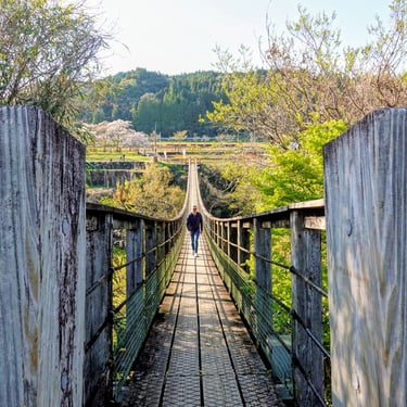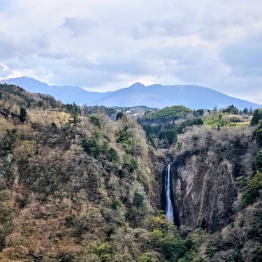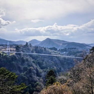 Weiter geht es in den Aso-Kuju-Nationalpark und zunächst zur Kokonoe Suspension Bridge. Die Brücke ist über 300m lang und gibt uns einen wunderbaren Blick über Wasserfälle und die Berge. Da steigt die Vorfreude aufs Wandern.
