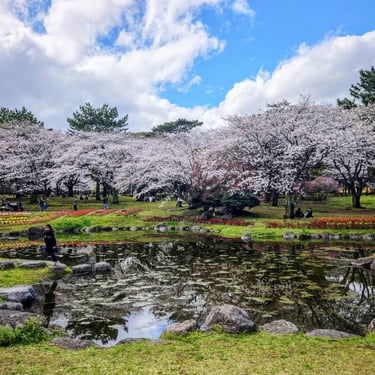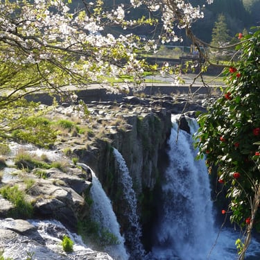 An den Harajiri Wasserfällen, den Niagarafällen des Ostens, erleben wir Postkartenmotive en mas. Berge, Kirschblüte, Inari-Tor, Tulpen: alles auf einem Blick. Eigentlich sogar noch besser, als die Wasserfälle, die durch den Ausbruch vom Mount Aso entstanden sind.