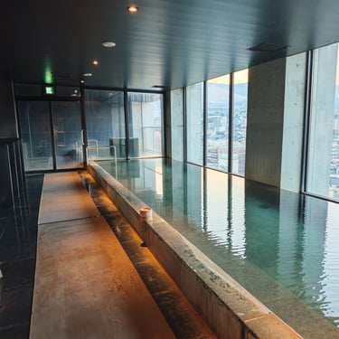 Viel im Onsen klappt für mich durch's Beobachten und Nachahmen. So entdecke ich ein kaltes Becken. Zunächst lasse ich kaltes Wasser aus einem Becher über mich laufen. Auch das mache ich falsch, wie mir die Frau im Wasser anzeigt, denn das Wasser, das von meinem sauberen Körper abspritzt, berührt das Wasserbecken. Also einen Schritt zurück gehen. Sie signalisiert mir, ich solle ins Wasser zu ihr kommen. Und das ich echt echt kalt und flach. Ich nehme meinen ganzen Mut zusammen und steige ins Becken und ab in die Hocke, sodass auch die Schultern bedeckt sind. Wir halten 2 bis 3 Minuten aus und tatsächlich wird es immer angenehmer.