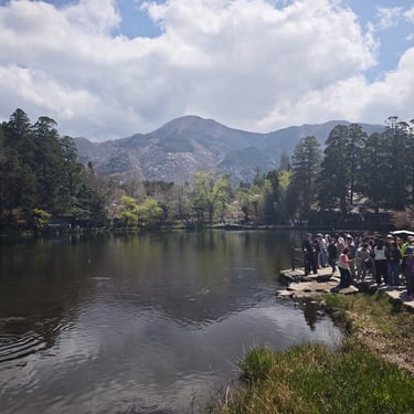 Unser erstes Stopp auf unserem viertätigen Roadtrip ist Yuifin. Wir erwarten ein gemütliches, kleines Bergdorf und treffen stattdessen auf ein Örtchen, in denen sich die Touristen -vorrangig asiatisch- durch die Straßen schieben. Dem malerischen Kinrin-See und dem charmanten Yufuin Floral Village können wir nicht allzu viel abgewinnen, dafür futtern wir uns ein wenig durch die Essensstände.