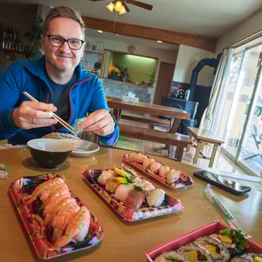 Mit einem vollen Bauch geht's für uns dann noch in eins der privaten Onsen. Zusammen sitzen wir im heißen Wasser und schauen in den dunkeln Wald mit den mystischen Bäumen. Auch das Frühstück ist ein kulinarisches Highlight. Es gibt eine Bentobox mit vielen leckeren kleinen herzhaften Dingen. Da gibt es dann mal eben Reis und Fisch zum Frühstück.