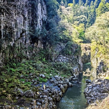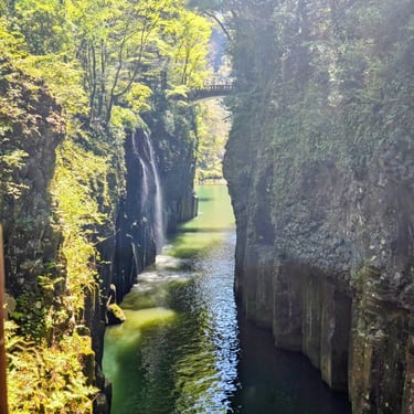 Unser kleiner Roadtrip bringt uns auch nach Takachio. Hier wollen wir in einer Schlucht Ruderboot fahren. Als wir ankommen erfahren wir als erstes, dass die Ruderboote heute aufgrund einer Inspektion nicht auszuleihen sind. Nach einer kurzen Enttäuschung entpuppt es sich als Vorteil, denn so können wir den Fluss ohne Touristen genießen.