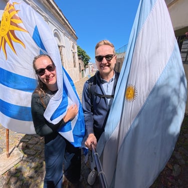 Highlight unseres Aufenthalts war der Ausflug nach Colonia del Sacremento in Uruguay. Die Tickets für die Fähre waren bereits gekauft, als die Hoffnung noch da war, dass die Erkältung sich nicht breit macht. Am einzig sonnigen Tag unserer knappen Woche in BA sind wir mit einer Fähre in einer guten Stunde zu dem malerischen Städtchen übergesetzt. Der Stempel von Uruguay im Pass entschädigt dafür, dass man in Argentinien keinen mehr bekommt. Colonias Altstadt bietet so einiges fürs Auge und den Gaumen und ist offensichtlich beliebtes Ziel für die Großstädter, um am Wochenende eine gute Zeit zu haben. Wir haben viele Herren oder Damenrunden gesehen, die sich eine Art Golfwägelchen ausgeliehen haben und damit die Promenade hoch und runter gecruist sind. Insgesamt hat Uruguay einen erstaunlich entspannten Vibe ausgestrahlt, das sicher auch an den vielen Mate-Trinkern gelegen hat. Mit der Themoskanne unterm Arm und dem Matebecher samt Strohhalm in der Hand waren diese überall in der Stadt zu sehen.