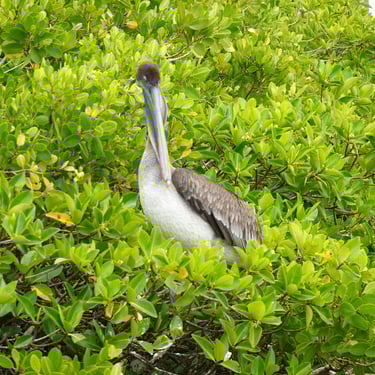 Auch unser Ausflug zur Tortuga Bay am nächsten Tag bescherte uns freundliche Begegnungen mit den Ureinwohnern der Insel. Am Ende des Playa Mansa kommen die Iguanas nach dem Fressen aus dem Wasser und sonnen sich am Strand. So wärmen sie ihren Körper wieder auf, um erneut ins Wasser zu tauchen und die Algen am Meeresgrund zu fressen. Dass sie an ihren Liegeplätzen permanent von Touristen fotografiert werden, scheint sie nicht zu stören. Am Playa Brava direkt dahinter gibt es deutlich ruhigeres Wasser, so dass Baden erlaubt ist. Während des Schwimmens haben wir dann Wasserschildkröten, springende Fische und Pelikane beobachten können.