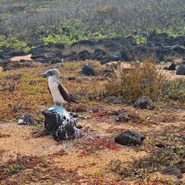 Am letzten Tag auf Santa Cruz haben wir eine Tour mit Schnorcheln und zu einem - wie beschreibt man es am besten - beliebten, romantischen Treffpunkt der berühmten Blaufußtölpel gemacht. Die Blaufußtölpel waren munter und ließen sich von uns ganz aus der Nähe beobachten. Das Schnorcheln hat Lust auf mehr gemacht. Da waren schon einige bunte Fische und sogar zwei Schildkröten zu sehen. Morgen geht's in aller Frühe - Treffpunkt um 6 am Pier - mit dem Schnellboot nach Isla Isabella. Da sind wir mal gespannt was uns erwartet!