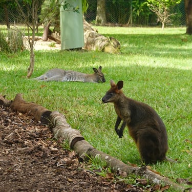 Zum Abschluss unseres Roadtrips besuchen wir den Australia Zoo, den bekannten Tierpark der Familie Irwin. Da die Sommerferien zu Ende sind, ist es nicht sehr voll und das Gelände ist weitläufig und naturnah. Besonders beeindruckend ist der Kasuar, dessen Erscheinung eher an einen Dinosaurier als an einen Vogel erinnert. Und auch all die anderen wunderbaren Tiere, die es in Europa nicht gibt, sind spannend zu beobachten, wie Ameisenigel, Quokkas und Womabts. Zudem lebt hier im Zoo lebt auch die weltweit größte Giraffe mit 5,7 m.