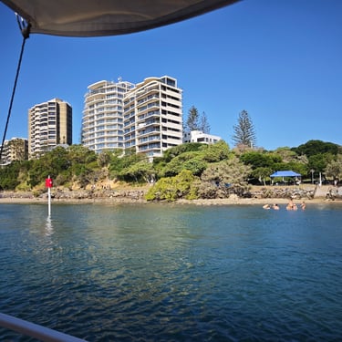 Nach Tagen im Hinterland erreichen wir Mooloolaba und damit wieder die Küste von Queensland. Breiter Sandstrand, Palmen und eine entspannte Promenade empfangen uns. Wir verbringen viel Zeit am Meer, lassen uns von bis zu drei Meter hohen Wellen mitnehmen und genießen am Abend eine Sunset-Segeltour.