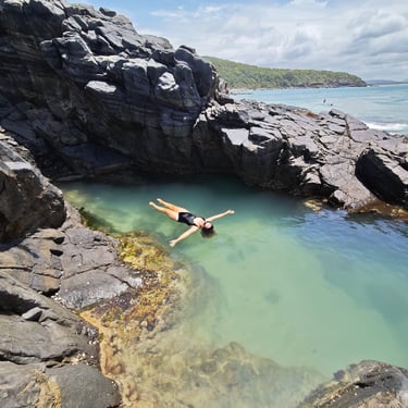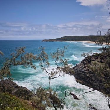 Von Noosa aus unternehmen wir den bekannten Coastal Walk, einen der schönsten Küstenwanderwege Australiens. Der Pfad führt entlang steiler Klippen, durch lichte Wälder und immer wieder zu Aussichtspunkten mit Blick auf das offene Meer. Bis zum Hell’s Gate sind wir unterwegs und haben großes Glück: Mehrfach entdecken wir Delfine, die parallel zur Küste durch die Wellen ziehen. Später gehen wir sowohl im Meer als auch in einem natürlichen Felsenpool baden, geschützt vor der Brandung. Das Wasser ist erfrischend und die Kulisse beeindruckend.