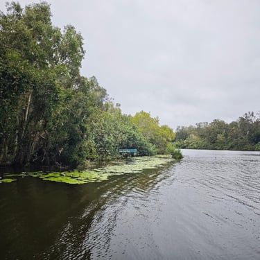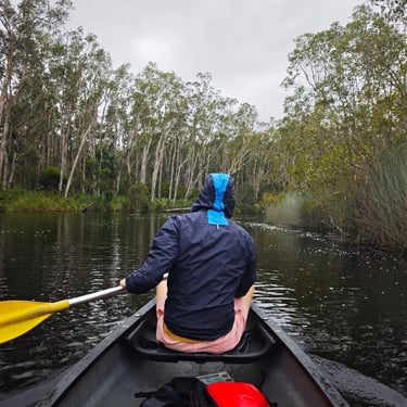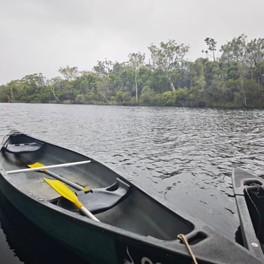 Am nächsten Tag erkunden wir die Everglades von Noosa, eines der zwei Everglade-Systeme weltweit. Everglades entstehen, wenn Salzwasser oben vorhanden ist und Süßwasser von unten durchsickert und beides sich mischt. Zunächst fahren wir mit dem Boot über den Lake Cootharaba, während Regen auf uns niederprasselt und das Wetter eher grau bleibt. Auf dem Weg zu den Kanus passiert es: Zum ersten Mal sehen wir einen Koala in freier Natur. Hoch oben in einem Baum, zusammengerollt, ruhig und vollkommen in sich versunken. Später steigen wir in Kanus um und paddeln 5km durch die schmalen Wasserwege. Die Landschaft ist geprägt von Teebäumen, deren Blätter das Wasser je nach Lichteinfall dunkel oder bernsteinfarben färben. Ich nutze die Gelegenheit und springe ins Wasser und das Teebaumöl lässt meine Haut leicht orange schimmern. Wir versuchen nicht an die ganzen Catfish zu denken, die im Wasser unterwegs sind und genießen die Kur für unsere Haut.
