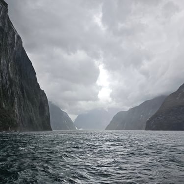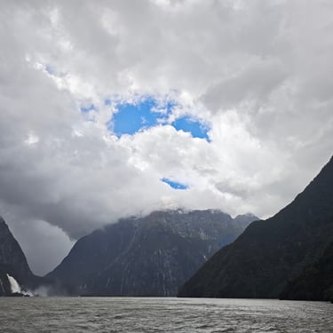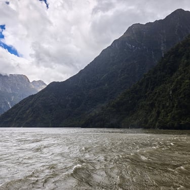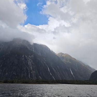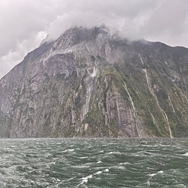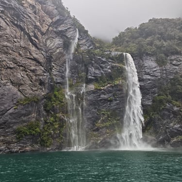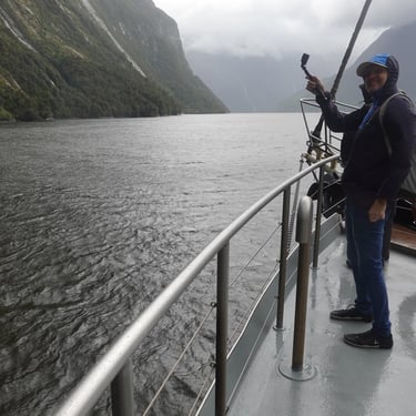 Der nächste Morgen empfängt uns mit strömendem Regen. Schon um 7:30 Uhr checken wir aus und machen uns auf den Weg zu einem der berühmtesten Fjorde Neuseelands: dem Milford Sound. Die Straße dorthin ist nass, grau und wolkenverhangen, und der Regen begleitet uns bis zum Schiff.