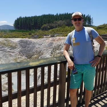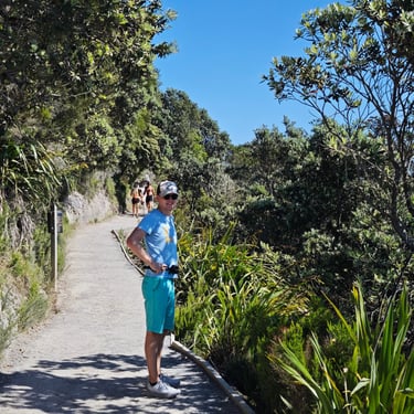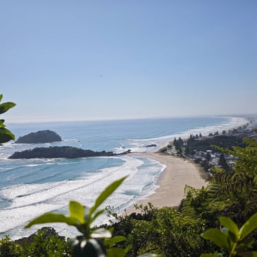 Nach dem Spaziergang im Wald geht es weiter nach Maunganui. Der Ort überrascht mit seiner völlig anderen Stimmung: lebhaft, sonnig, voller Surfer, Flipflops und Beachvolleyball. Nach einem Abendessen mit Meerblick steigen wir am nächsten Morgen noch vor dem Frühstück auf den Mt. Maunganui, gemeinsam mit Schulklassen, Rentnern und zahlreichen Frühaufstehern. Danach frühstücken wir mit Blick auf den Strand, baden im Meer und genießen die 21 Grad warmen Wellen. Wir haben viel Spaß dabei, in die Wellen einzutauchen. Der Abstecher hat sich absolut gelohnt und uns gezeigt, wie vielfältig Neuseeland ist.