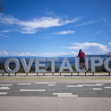 Am nächsten Tag ist die Hauptroute weiterhin gesperrt, also machen wir uns auf den Weg nach Lake Taupo. Unterwegs wandern wir zwei Stunden auf dem Wahihohonu Track im Tongariro Nationalpark, weit entfernt vom Feuer. Der Lake Taupo, der größte See Neuseelands und Australiens, empfängt uns mit strahlendem Sonnenschein. Auf dem Campingplatz nutzen wir die Waschmaschine und springen in den Pool, bevor ich abends den neuen Blogartikel hochlade. Das Video von Stephan dazu benötigt die ganze Nacht.