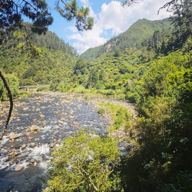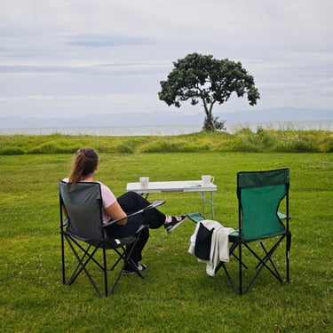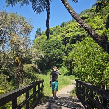 Auf dem Weg zu unserem letzten Campingplatz legen wir eine Kaffeepause im Grünen ein und kommen erneut mit Locals ins Gespräch. Für uns ist dies einer der schönen Vorteile der weniger touristischen Nordinsel. Zudem machen wir noch einen Zwischenstopp beim Karangahake, dem ehemaligen Goldgräbergebiet Neuseelands. In Miranda erwartet uns ein Campingplatz mit Palmen, Bäumen und einer lebhaften Vogelwelt. Im Hot Pool lassen wir unseren letzten Abend als Camper ausklingen und schauen der untergehende Sonne zu, die sich rot im Wasser spiegelt.
