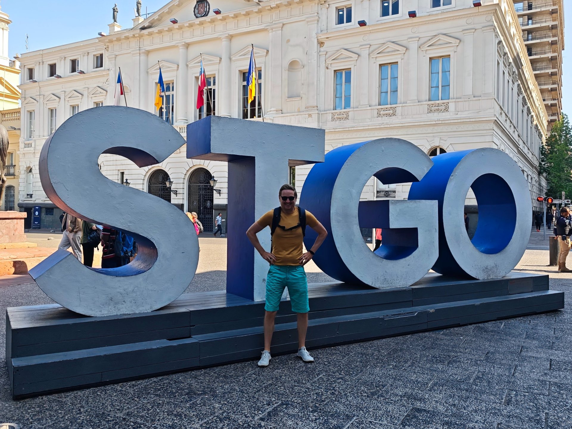 Abgesehen vom verunglückten Start, haben wir einen positiven ersten Eindruck von Santiago. Unser AirBnB liegt unweit des Plaza de Armas, wo wir am nächsten Morgen direkt an einer Stadtführung teilnehmen. Wieder äußerst interessant, was uns der Guide so über die Stadt und die Geschichte erzählt. Wir erfahren vor allem viel von der Zeit der Diktatur unter Pinochet und dem Davor und Danach. Wir stehen genau an dem Punkt, an dem ein Dokumentarfilmer erschossen wurde, der den Putsch durchs Militär zufällig filmte. Wir sehen auch das Einschussloch in der Statue eines wichtigen Politikers, der vor Pinochet viel für das Land getan hat. Wir lernen darüberhinaus, dass Santiago täglich von Erdbeben erschüttert wird. Da diese aber fast immer unter dem Wert von 5 auf der Richterskala liegen, bekommt man das nicht mit.