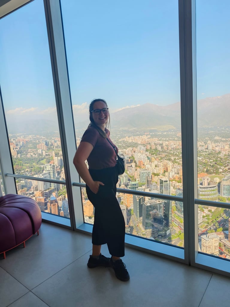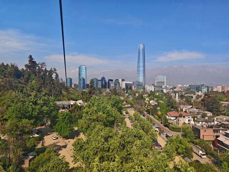 Der wohlhabende Teil im Osten der Stadt ist sehr lebenswert mit seinen vielen schicken Einfamilienhäusern, viel Grün und netten Cafès und Restaurants. Das größte Highlight hier ist aber der Cerro San Cristóbal, der Hausberg der Stadt. Dieser ist mit Seilbahnen erschlossen und die Ticketpreise sind sehr moderat. Von oben bietet sich ein unglaublicher Blick auf die Skyline Santiagos, eingerahmt von den schneebedeckten Andengipfeln. Der Cerro San Cristóbal ist das Naherholungsgebiet der Stadt und bietet jede Menge Möglichkeiten zur Beschäftigung und Entspannung. Wie der Central Park, nur eben nicht flach. Toll! Im nahegelegenen Bankenviertel befindet sich das Costanera Center, das höchste Gebäude Südamerikas, mit stolzen 300 Metern Höhe. Von der Aussichtsplattform im 62. Stock sehen wir wie riesig Santiago wirklich ist.