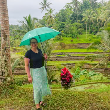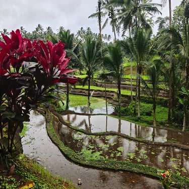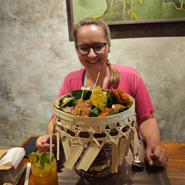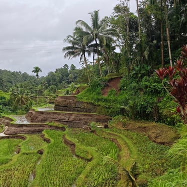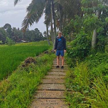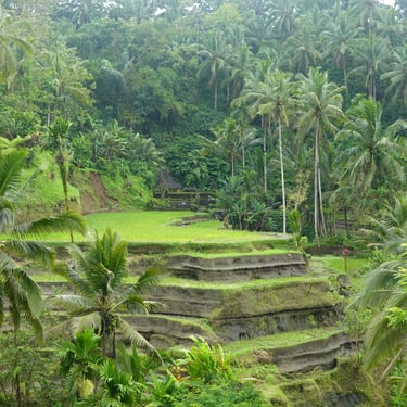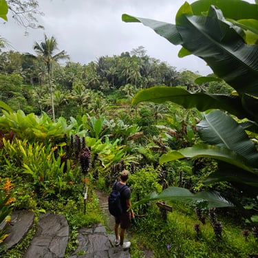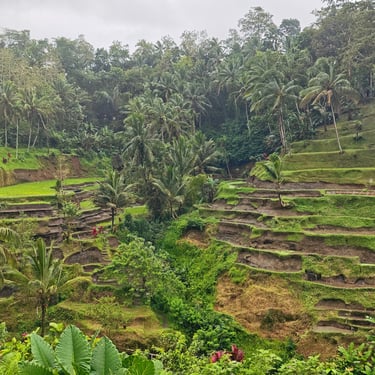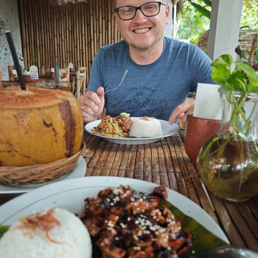 Rund um Ubud lässt sich Bali wunderbar zu Fuß entdecken. Eine unserer ersten Erkundungen führt uns auf einen Rice-Terrace-Walk, vorbei an sattgrünen Reisfeldern, kleinen Wegen und Wasserläufen. Mittags kehren wir ein, essen mit Blick ins Grün und merken, wie entschleunigend diese Landschaft wirkt. Ubud zeigt sich hier von seiner ruhigeren Seite, fernab der Hauptstraße, die laut und voll ist.