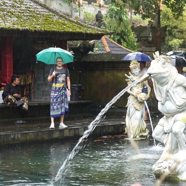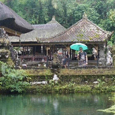 Anschließend besuchen wir noch zwei Tempel: Pura Gunung Kawi Sebatu wirkt ruhig und eingebettet in die Natur, während Tirta Empul mit seinen heiligen Wasserbecken deutlich lebendiger ist und viel mehr Touristen anzieht.