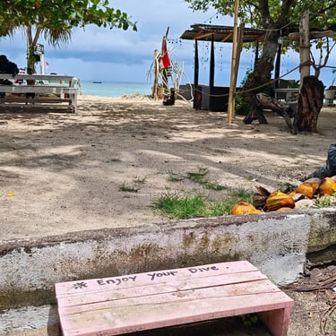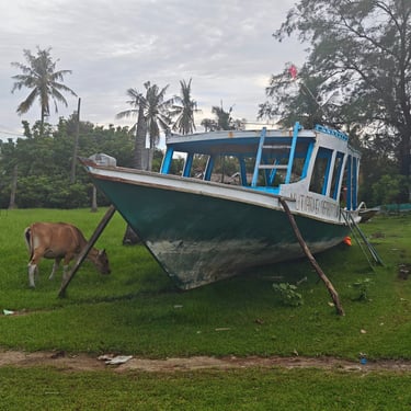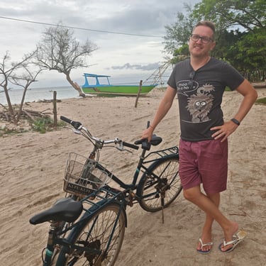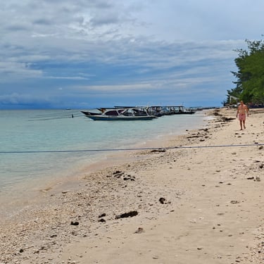 Nach den jeweiligen Tauchtagen verbringen Stephan und ich Zeit gemeinsam auf der Insel. Mit dem Fahrrad umrunden wir Gili Air. Es fährt sich leicht, doch der viele Müll ist nicht zu übersehen. Der Regen der vergangenen Tage hat zusätzlich Abfälle ins Meer gespült. Mein Tauchlehrer erklärt, dass vieles davon von Lombok stammt und durch starke Regenfälle ins Wasser gelangt. Inzwischen wird Müll zumindest in den Schulen thematisiert. Umso ernüchternder ist es, als ich sehe, wie nach einer Zementlieferung die Betonreste einfach ins Meer gekippt werden. Es gilt wohl: "Hauptsache, das Boot ist sauber". Mein Tauchlehrer erzählt mir, dass er immer wieder von Touristen auf diesen schlechten Umgang mit dem Müll angesprochen wird. Er selbst hat bei all unseren Tauchgängen Korallen von Plastikmüll entfernt.