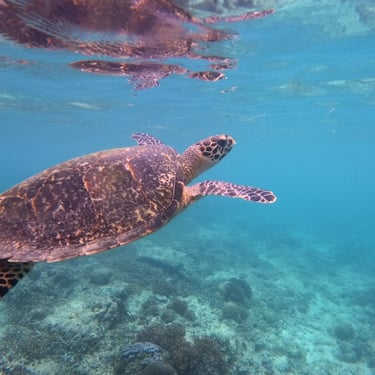 Am nächsten Morgen erwartet uns wieder Sonnenschein pur und daher geht es für uns zum schnorcheln. Die bunte Unterwasserwelt ist vielfältig und beim Schnorcheln sehe ich dann auch noch eine Kadettschildkröte, die durchs Wasser gleitet.