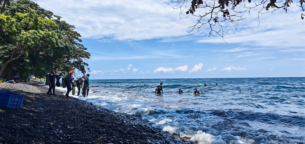 Von Gede erfahre ich, dass die vielen Frauen, die ich in Tumbalen am Strand sehe, hier ihr Geld verdienen, indem sie die Flaschen und Ausrüstung der Tauchgäste tragen. Im Durchschnitt kommen sie auf etwa 10.000.000 Indonesische Rupiah im Monat, das sind zirka 500 Euro, und verdienen damit mehr als mein Tauchlehrer Gede.