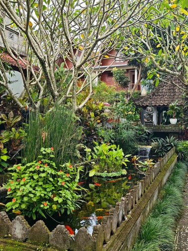 Ubud empfängt uns mit einem kleinen Kulturschock. Die Hauptstraße ist verstopft von Autos und Motorrollern, Hupen gehören hier zur Geräuschkulisse. Umso größer ist die Erleichterung, als wir in unserer Unterkunft ankommen. Unser Bungalow liegt in einer kleinen Wohnanlage, umgeben von Grün, wie eine Oase mitten im Trubel.