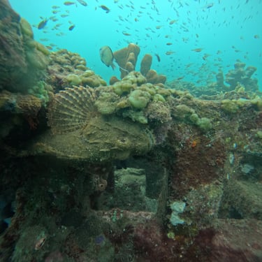 Das US-Transportschiff wurde 1942 torpediert und liegt hier leicht zugänglich auf Grund. Neben dem Wrack bietet die Gegend exzellente Tauchspots wie den Coral Garden, Pyramids und Drop Off, die ich mit artenreicher Unterwasserwelt genießen konnte.