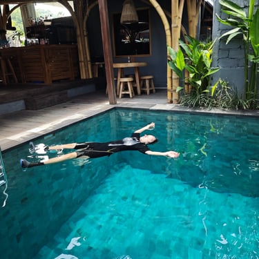 Amed empfängt, zumindest mich, mit Salzwasser auf der Haut und Neopren auf den Schultern. Denn in Amed verbringe ich zwei intensive Tage mit einem Tauchkurs bei meinem Tauchlehrer Gede. Zum Start übe ich im Pool, vier Tauchgänge finden dann im offenen Meer statt.