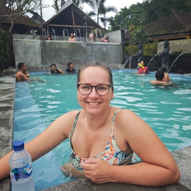 Dank des Vulkan Mount Batur gibt es in der Region viele heiße Quellen. Auch wir gehen in die Hot Springs und sind mitten drin im balinesischen Leben. Wir sind die einzigen Touristen und es ist sehr interessant bei 36 Grad Wassertemperatur den anderen zuzuschauen. Da wird im Wasser getrunken, gegessen und sogar geraucht. Trotzdem ist alles sehr sauber und viele bleiben ebenfalls sehr lange im Wasser. Einer sitzt sogar mit einem Bimbsstein im Wasser, zum Glück im anderen Becken, und reinigt komplett Haut und Nägel. Anschließend werden die Duschen nochmals genutzt und sich minutenlang eingeseift und gewaschen.