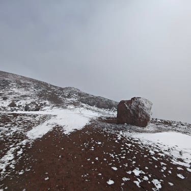 Auf dem Rückweg vom Gletscher stoppten wir noch kurz beim Basislager auf 4864m, wo wir einen heissen Kakao trinken konnten, der aber kaum aufwärmte. Entsprechend froh waren wir dann, als wir uns auf den Rückweg zum Jeep machten. Der Abstieg war im Vergleich zum Aufstieg ein Kinderspiel und ging geradewegs eine windgeschützte Rinne herab. Als Belohnung für unsere Mühen zeigte der Cotopaxi uns für einen kurzen Augenblick seinen Gipfel. Im Nachhinein erfuhren wir, dass die Gipfelbesteigung an diesem Tag aufgrund der Witterung auch abgebrochen werden musste. Schön war diese Wanderung nicht, aber sicher eine, die uns noch lang im Gedächtnis bleiben wird.