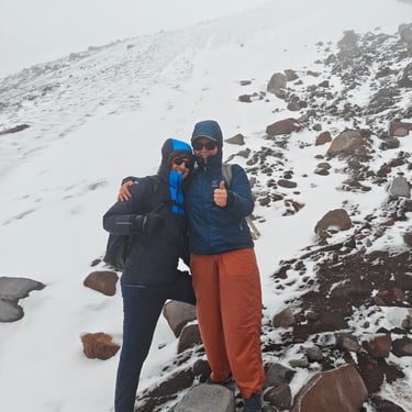 Vom Parkplatz zum Gletscher sind es 500 Höhenmeter (von 4500m > 5000m). Die Höhe ist hier nur eine der Hürden, denn das Wetter war die viel größere Herausforderung. Am Cotopaxi weht immer ein kräftiger Wind. Dass dieser noch dazu mit Temperaturen von ca. -10 Grad sehr kalt ist, macht es erforderlich, sich gut vorzubereiten. Als wir den Hang des Cotopaxi hochstapften hat es dazu noch geregnet. Wir haben also alles angezogen, das wir an warmer, schützender Kleidung dabei hatten: T-shirt, Longsleeve, Fleece, Jacke, Regenjacke und jeweils 2 Hosen übereinander.