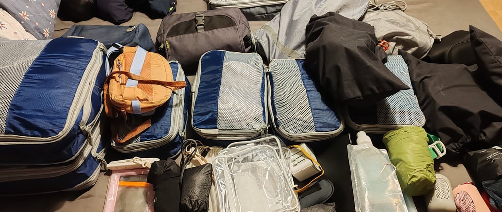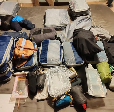 Unser erster Rucksack steht ja schon seit Sommer '24 fest: Der Osprey Fairview 40 hat uns schon in Kolumbien begleitet. Wir waren so begeistert, dass für uns klar war, dass auch der zweite Rucksack ein Osprey werden wird. Nur welche Größe? Würde ein zweiter Rucksack mit 40l Packvolumen ausreichen? Insbesondere Monique war da sehr skeptisch. Nach viel Recherche haben wir uns den Osprey Sojourn Porter mit 60l bestellt und direkt mal zur Probe gepackt. Manches Kleidungsstück und Ausrüstungteil fehlt noch, aber wir haben weitestgehend so gepackt wie wir es laut Packliste auch für die tatsächliche Reise tun werden. Der Rucksack gefällt uns gut, weil man ihn wie einen Koffer ganz öffnen kann, aber wir werden noch Gepäck einsparen müssen. Selbst mit 60l wird es knapp! Monique hatte mit ihren Bedenken durchaus recht.