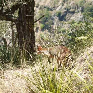 Weiter geht es in den Oxley Rivers Nationalpark, der zu den größten Schutzgebieten des Bundesstaates gehört. Tiefe Schluchten, weite Ausblicke und gut ausgebaute Wanderwege machen den Park zu einem idealen Ort, um die Weite Australiens zu begreifen. Wir sehen Wallabys und hoffen, in einem Bereich, wo es Dingos gibt, dass wir davon keinen sehen. Diese ganzen verschiedenen Tiere, sind schon ein Stück weit einschüchternd beim Wandern.