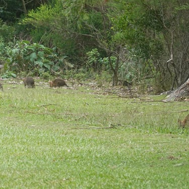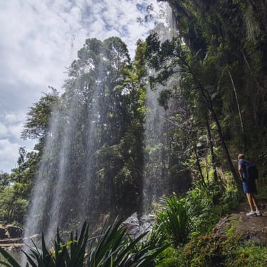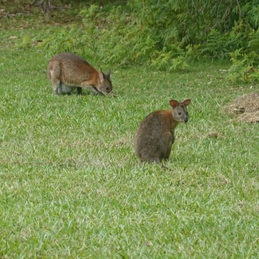 Am nächsten Tag tauchen wir wieder in den Regenwald ein, diesmal im Springbrook Nationalpark. Der Twin Falls Circuit führt durch dichten, feuchten Wald, vorbei an Farnen und Wasserfällen. Auf dem Purling Brook Falls Circuit sind wir deutlich schneller unterwegs als angegeben, denn die Zeitangaben hier sind sehr großzügig bemessen. Vor und nach der Wanderung müssen wir unsere Schuhe reinigen, um keine fremden Samen oder Erde in andere Waldgebiete einzuschleppen. Ein kleiner Handgriff, der zeigt, wie ernst Naturschutz hier genommen wird. Am Rastplatz sehen wir ganz viele Pademelons, was Kängurus in ganz klein sind. Danach geht es noch an den Strand: erst kühler Schatten im Wald, dann Sand und Wasser zwischen den Zehen. Es ist eine Kombination, die kaum zu toppen ist. Abends spielen wir erneut Minigolf, in der Hoffnung meinen Erfolg vom Vorabend zu wiederholen.