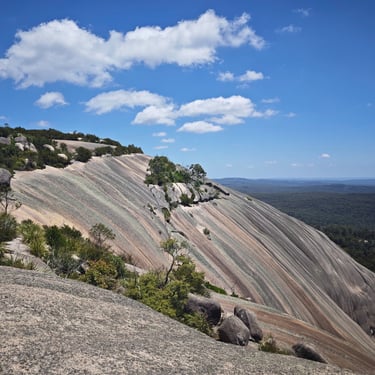 Ein absolutes Highlight ist die Wanderung im Bald Rock Nationalpark. Der Bungoona Walk führt durch eine beeindruckende Landschaft. Schon auf dem Weg dorthin hüpfen Wallabys über die Straße, als wollten sie uns willkommen heißen. Die Aussichten sind spektakulär: ringsum Wälder, am Horizont weitere Bergketten, dazwischen nichts als Weite. Obwohl wir durch viele Eukalyptuswälder wandern, lassen sich keine Koalas blicken. Dafür entdecken wir leuchtend rot-blaue Vögel und flinke Echsen, die über die Felsen huschen.