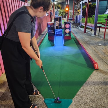 Wir bleiben über Nacht in Mermaid Waters. Der Ort ist sehr interessant, da er durchzogen ist von Kanälen und unser Hotel somit auf einer kleinen Insel liegt. Am Abend landen wir beim Minigolf. Überraschenderweise gewinne ich und dies ist das erste Mal in unserer Beziehung! Ein historischer Moment, der mir lange in Erinnerung bleiben wird. Was mir auch in Erinnerung bleiben wird, ist wie ekelhaft "Vegemite" schmeckt, welcher ein Aufstrich ist, der ein stark konzentrierter salzig-würziger Hefeextrakt ist. Das Zeug ist hier extrem bliebt und gilt als Geschmack des Landes.