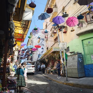 Am Nachmittag nehmen wir spontan an einer Stadtführung teil. Sie führt uns durch das historische Viertel, über den berühmten Hexenmarkt und zu den wichtigsten Plätzen der Innenstadt. Besonders eindrucksvoll ist die Fahrt mit den Seilbahnen, die La Paz in allen Himmelsrichtungen durchziehen. Von oben eröffnet sich ein völlig neuer Blick auf die Stadt.