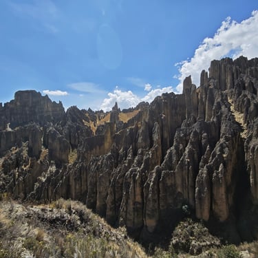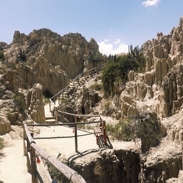 Tags darauf geht es hinaus in die Natur: zunächst ins Valle de la Luna mit seinen bizarren Felsformationen. Über Holzbrücken gehen wir durch eine Landschaft aus bizarr geformten Felsnadeln und Schluchten, die tatsächlich an eine Mondoberfläche erinnert.